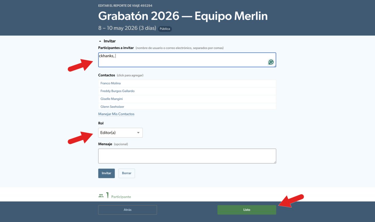 Para el Grabatón, cada equipo debe crear un solo reporte de viaje.