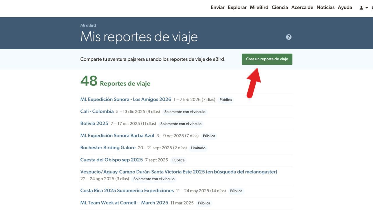 También puedes acceder directamente desde este enlace: https://ebird.org/mytripreports