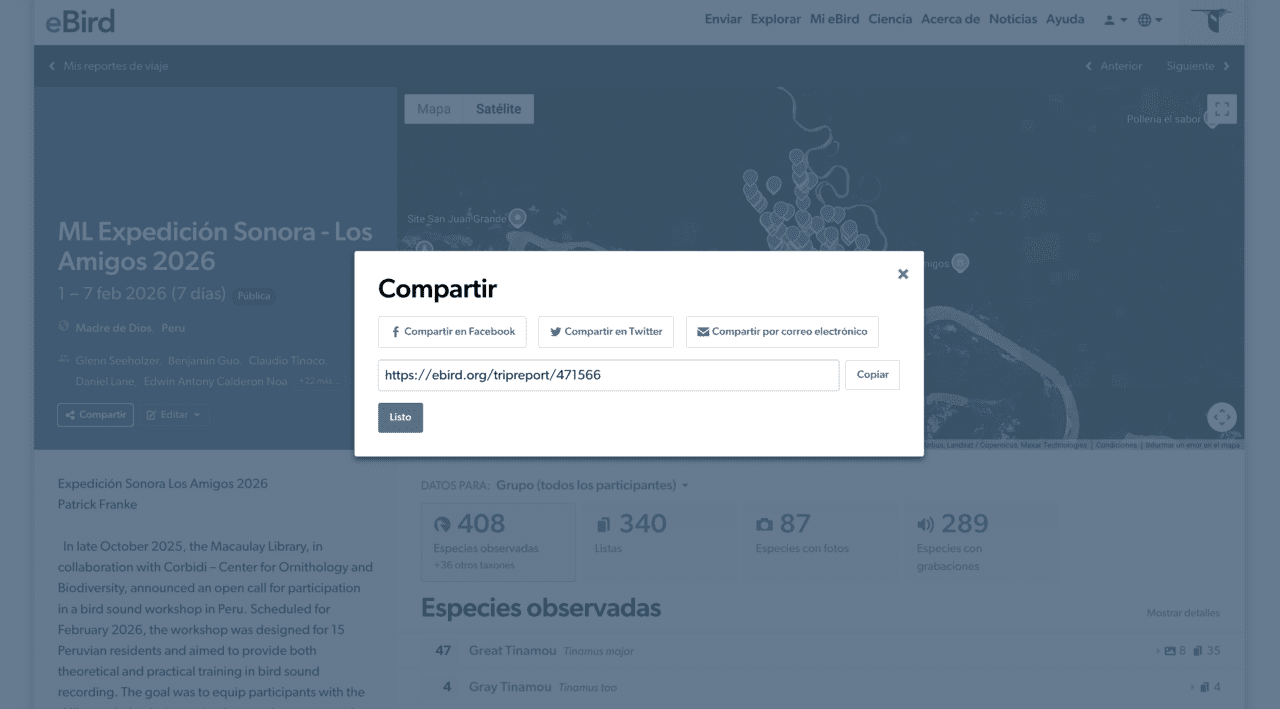 Es una herramienta de eBird que permite agrupar varias listas en un solo lugar y compartirlas mediante un enlace.